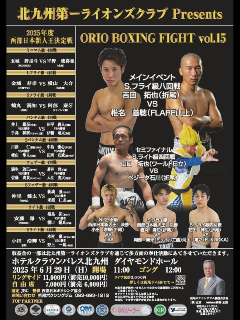 6月29日(日)クラウンパレスホテル北九州 試合予定・結果 Twitter Facebook はてブ Pocket LINE コピー 2025.06.03 黒崎KANAOジムではその方に合った指導を提案し、楽しくボクシングをモットーにトレーニングしていきます。女性専用フロアが有り、男性の視線を気にせず運動出来ます 公式試合予定 6月29日、クラウンパレス北九州 2025年度新人王トーナメント西部予選決勝 S・バンタム級4回戦 川添仁 (黒崎KANAO) vs 田所宣武 (長崎ハヤシダ) 応援宜しくお願い致します